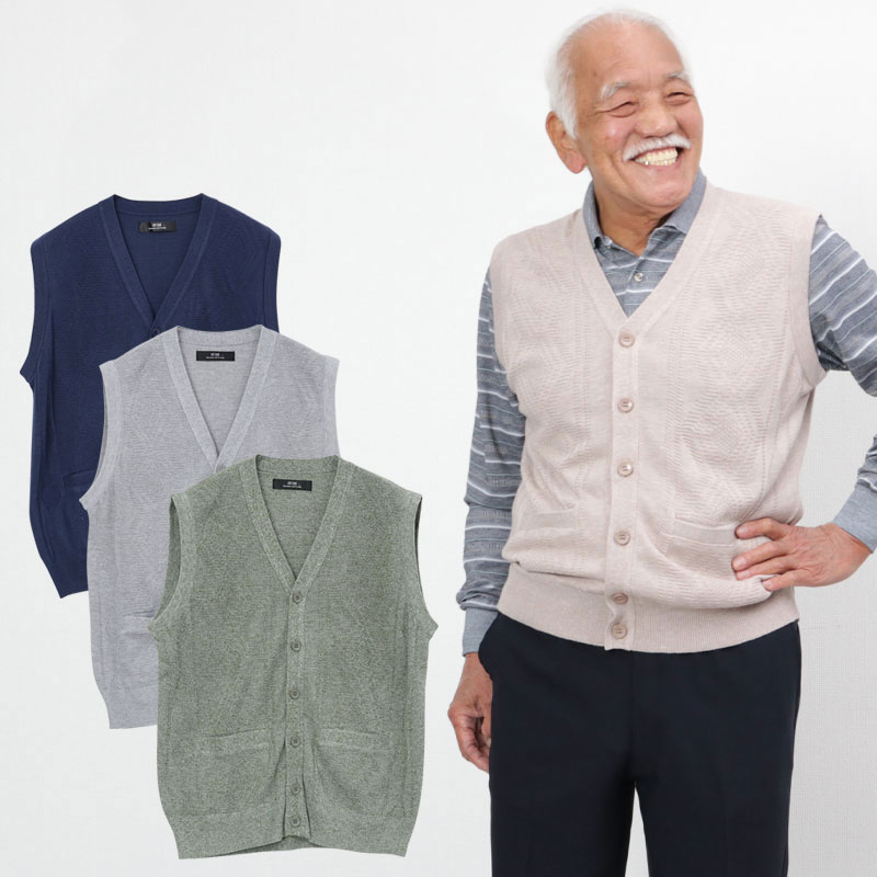 洗えるニット 前開きベスト メンズ ファッション ベスト シニアファッション 70代 80代 60代 春夏 秋冬 メンズ 男性 紳士服 お年寄り高齢者 送料無料 暖かい 防寒 あったか 敬老の日 プレゼント ギフト 実用的